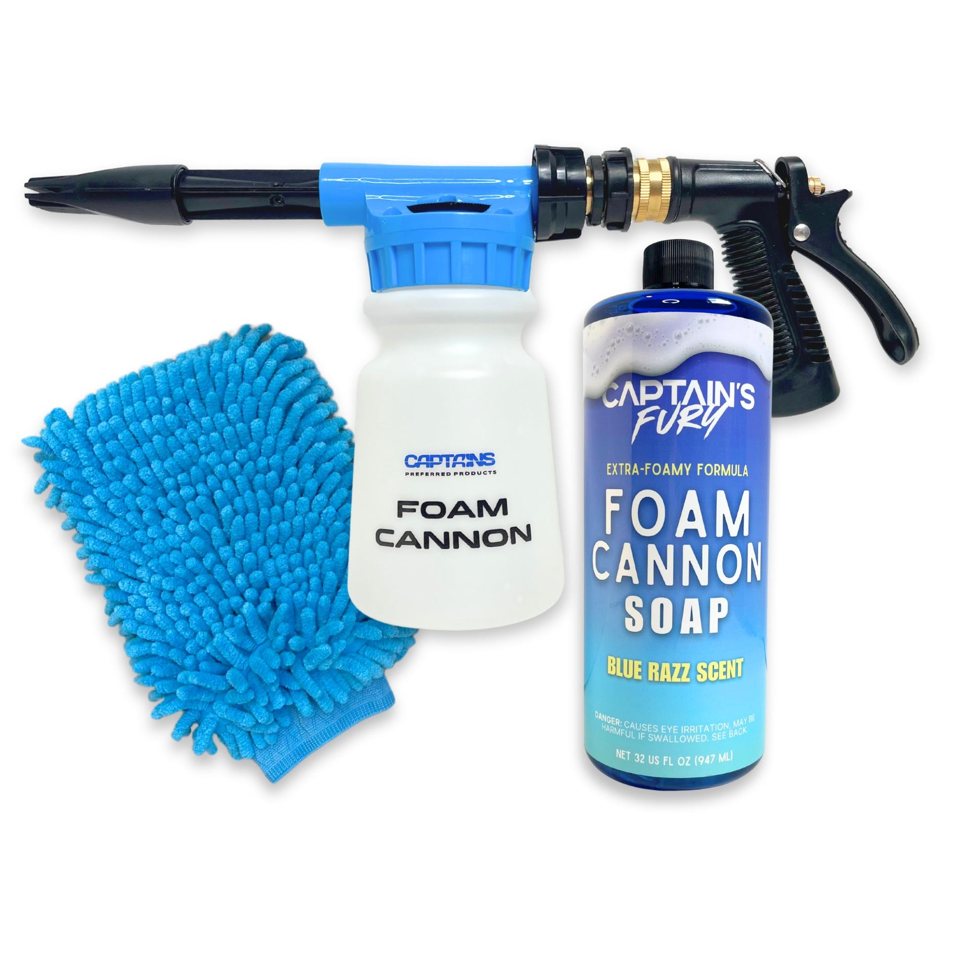 Our foam cannon is one of the easiest to use and at the best price out there. You haven't experienced a truly satisfying wash until you've used this cannon. Quickly soap down your car, boat, RV, or any solid surface that needs a good clean. The foam's clinging action helps to encapsulate and lift dirt, grime, and salt residue. This bundle includes our Wash & Wax Soap and a microfiber wash mitt for scrubbing tough grime. Our foam cannon works with any standard garden hose. Everything you need for the most satisfying wash is included. Just add water!