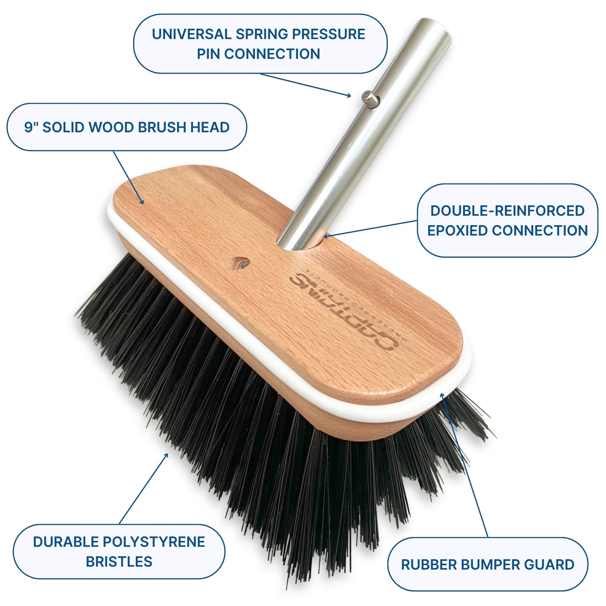 Solid wood brush head with polystyrene bristles–made to handle all boat surfaces and handle tough marine environments